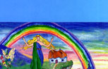 Outside of self-mailer for Irish Fairy Cards. We stitched together the inside visual contents of eight Irish Fairy cards with Photoshop magic and created this colorful and eye-catching scene for the outside panel of the mailer. We later repurposed the scene and used it as an image map for the Words of Wizdom web site. We love it when a plan comes together and we can reuse the creatives for more than one purpose! | |||||||||